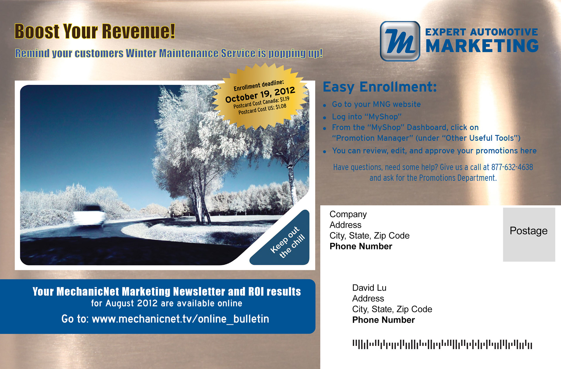 Postcards sent to customers on a monthly basis